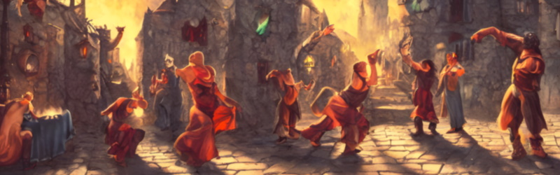 Entering the junction of Cow Lane we saw – and heard – a vast Devil wrapped in chains and jangling with keys, deep in conversation and negotiations with a Drow.